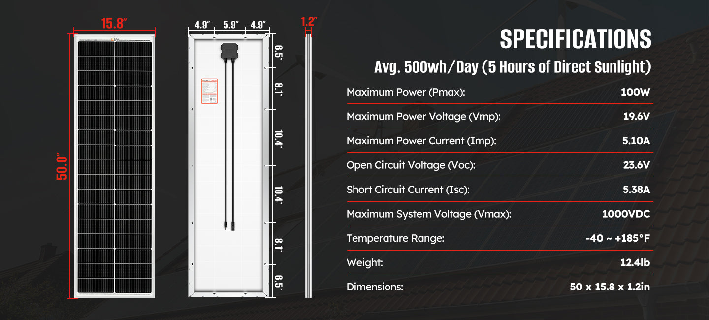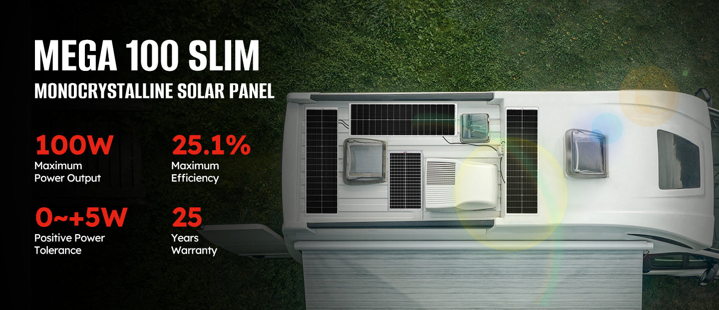 Panel solar delgado Rich Solar de 100 vatios y 12 V | Garantía de salida de 25 años | Certificación UL