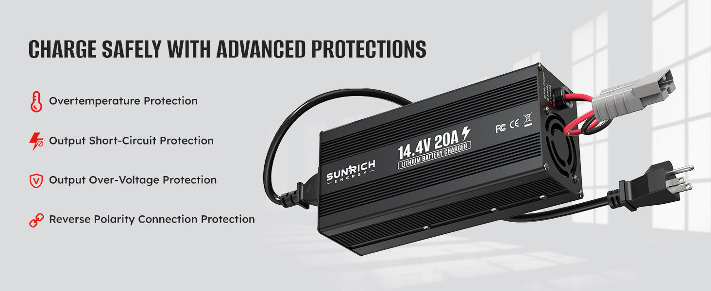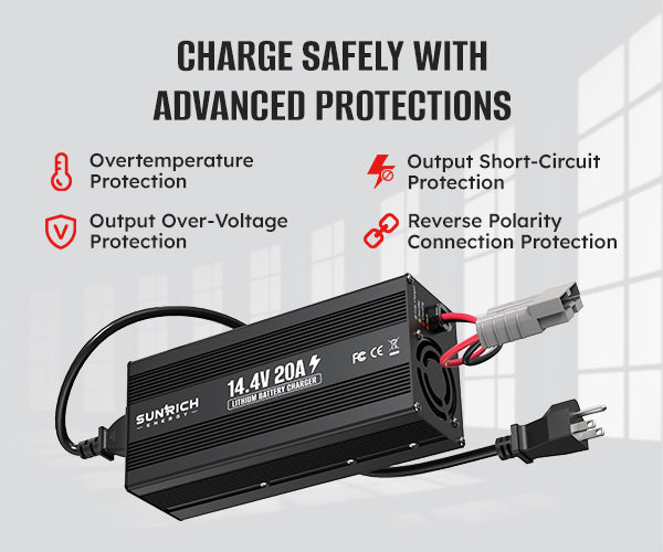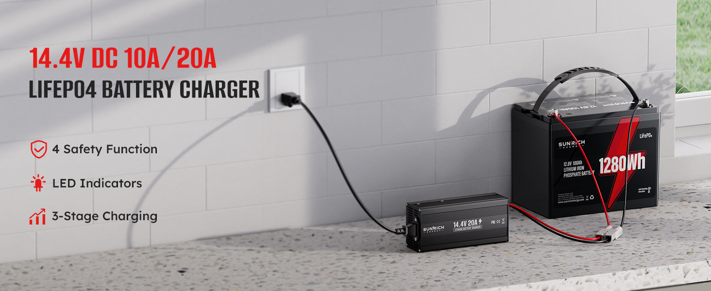 14.4V LiFePO4 Battery Charger | 10A/20A, 100-240V AC Input