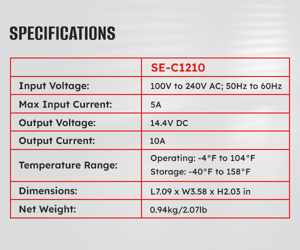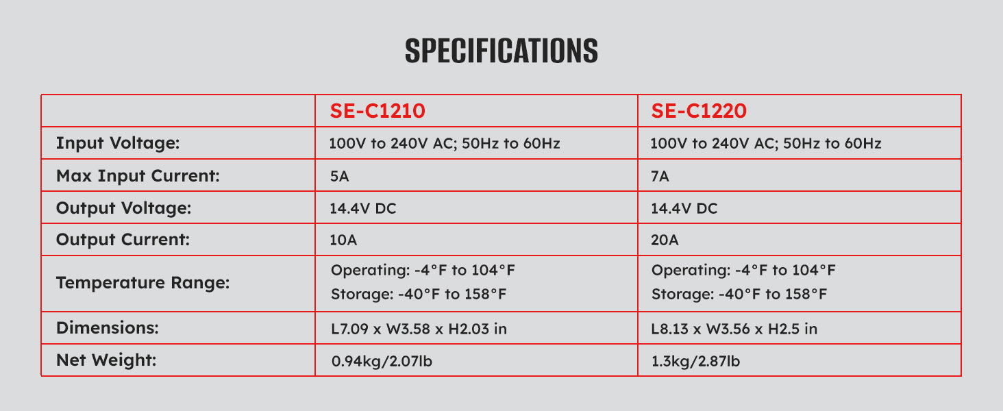 Output Current | 10A(SE-C1210); 20A(SE-C1220) |