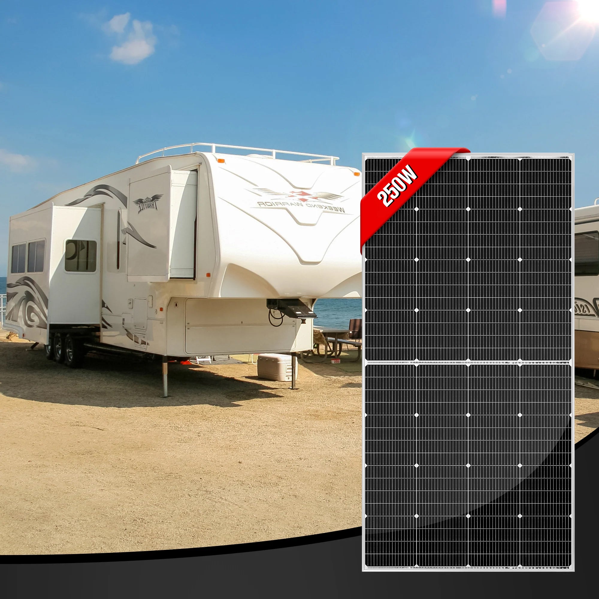 Panel solar independiente de 250 vatios y 24 voltios de Rich Solar | Garantía de salida de 25 años | Certificación UL