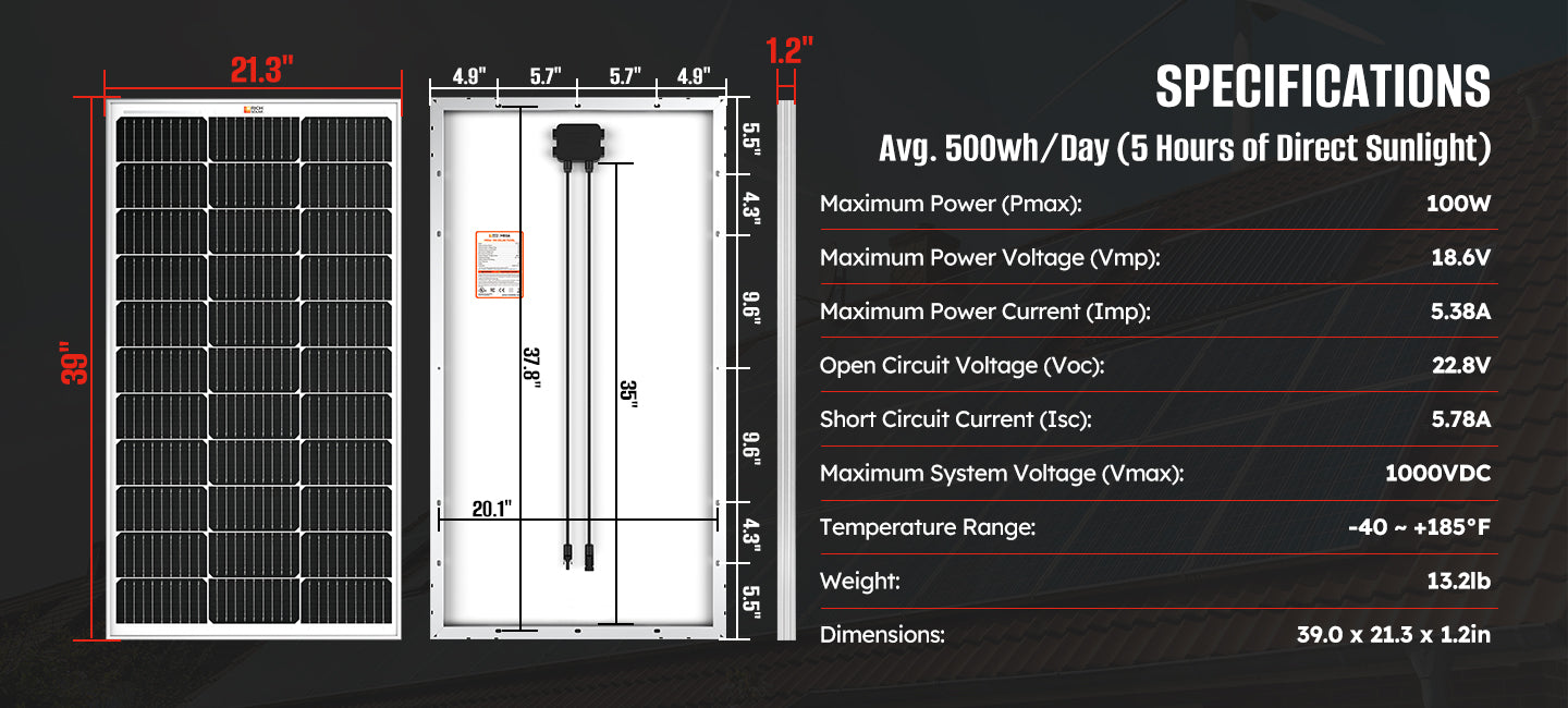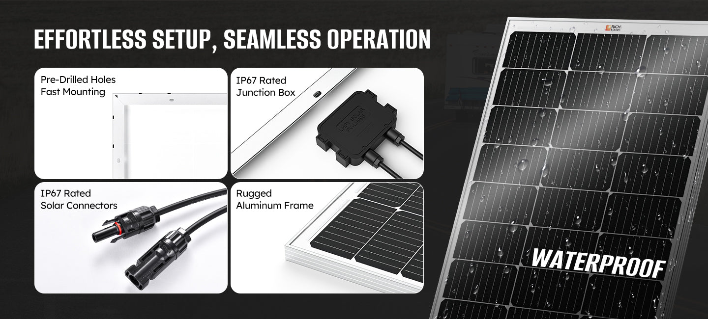 RICH SOLAR | 100 Watt 12V Solar Panel | 25-Year Output Warranty | UL Certified