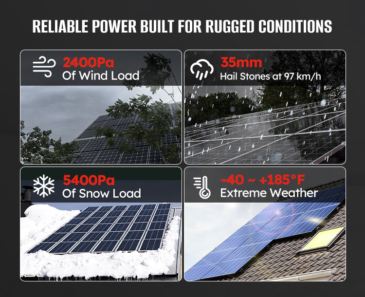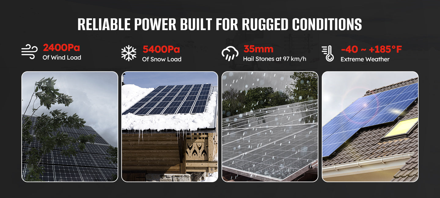 The solar panels have a performance warranty of 25 years. After 5 years of use, the panels should output more than 95% of the rated power. After 10 years, that output is 90%, and after 25 years, the output should be 80%.