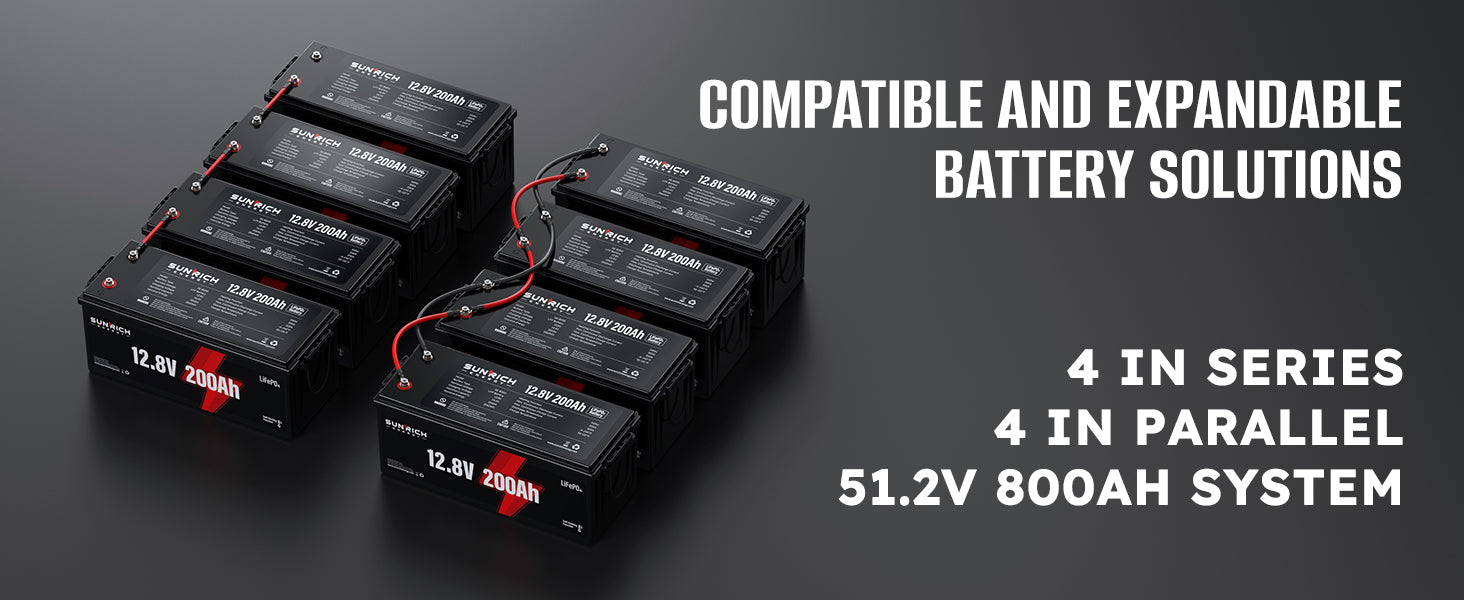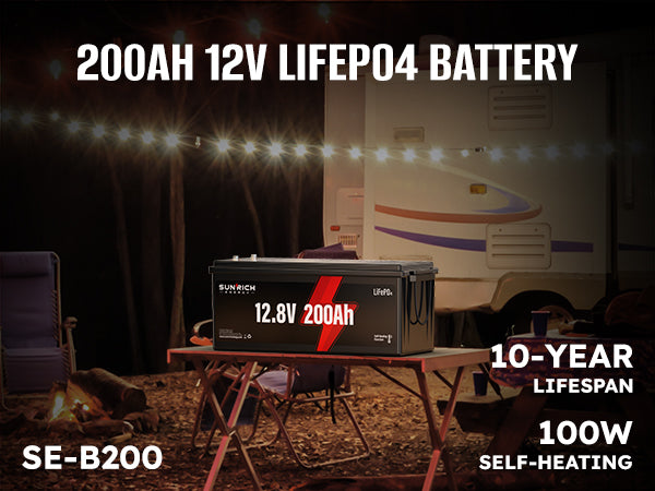 Storage Capacity: 200 Ampere hours (Ah). Sunrich Energy LiFePO4 batteries provide stable and consistent power throughout their discharge cycle. They maintain a steady output, minimizing capacity loss and avoiding the sharp drop-off seen in similar-sized SLA batteries.