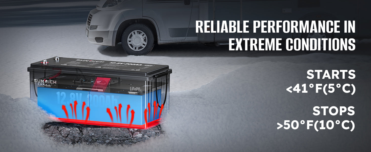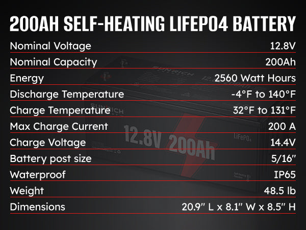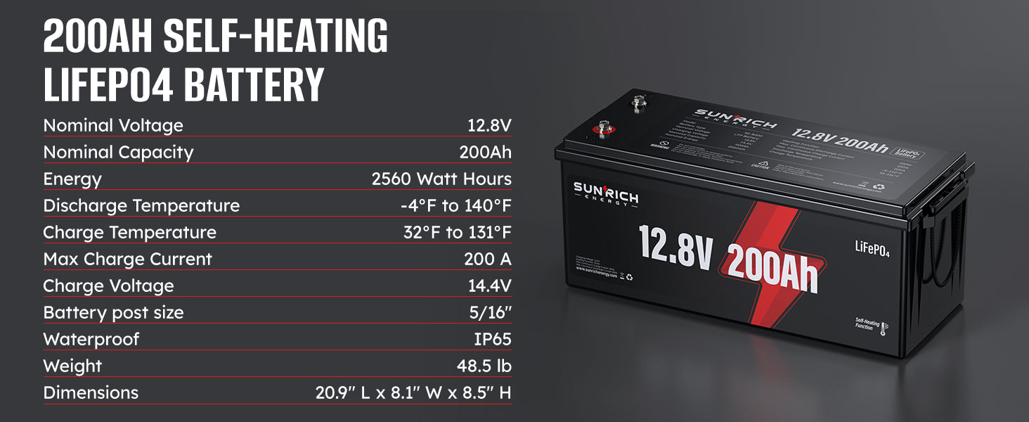12V 200Ah Heated LiFePO4 Battery | 2560Wh Deep Cycle Lithium Battery