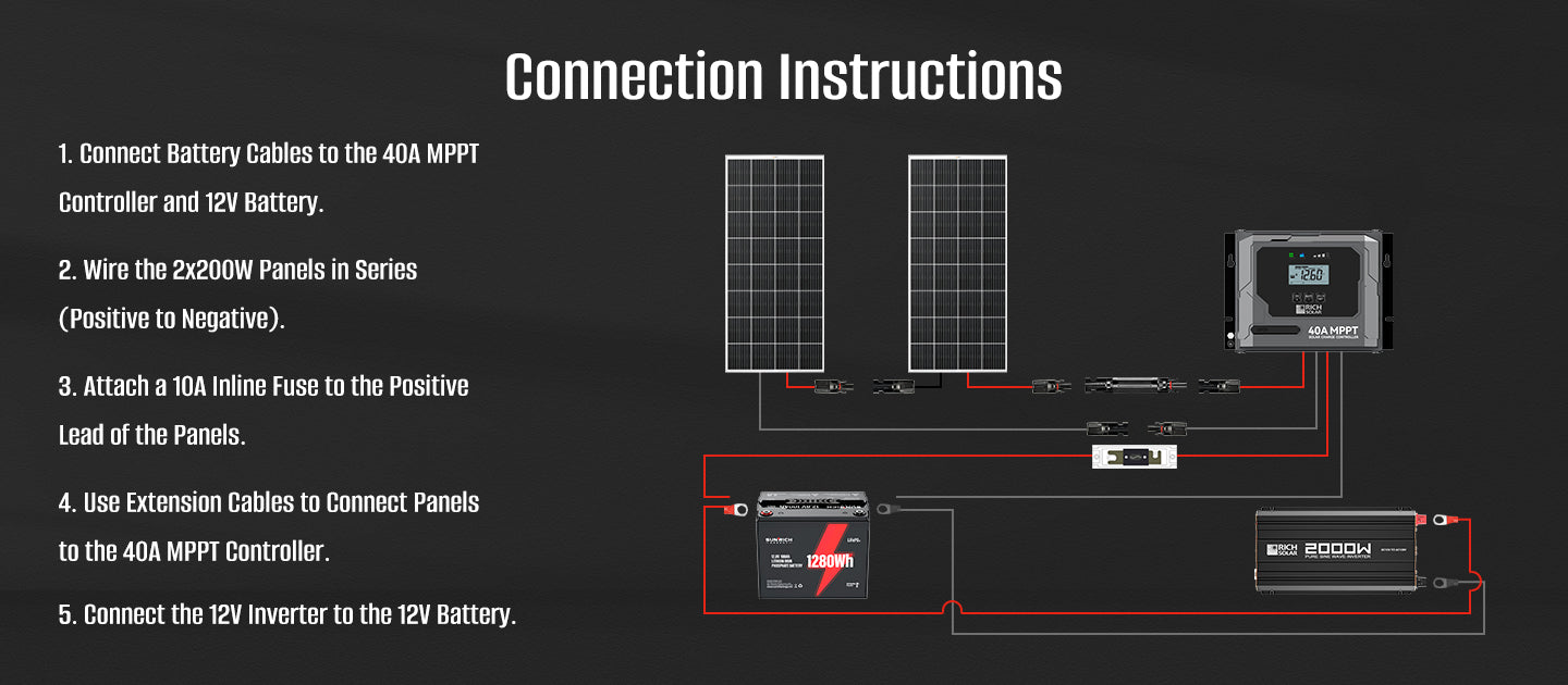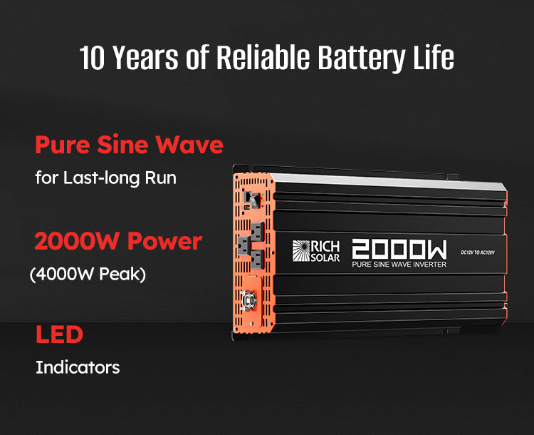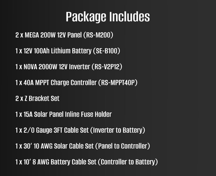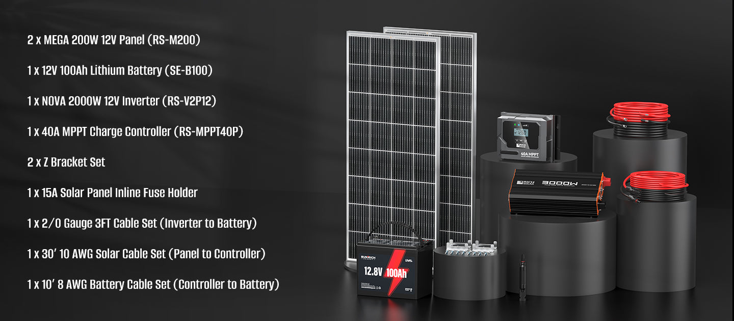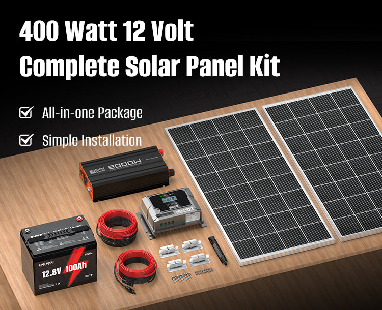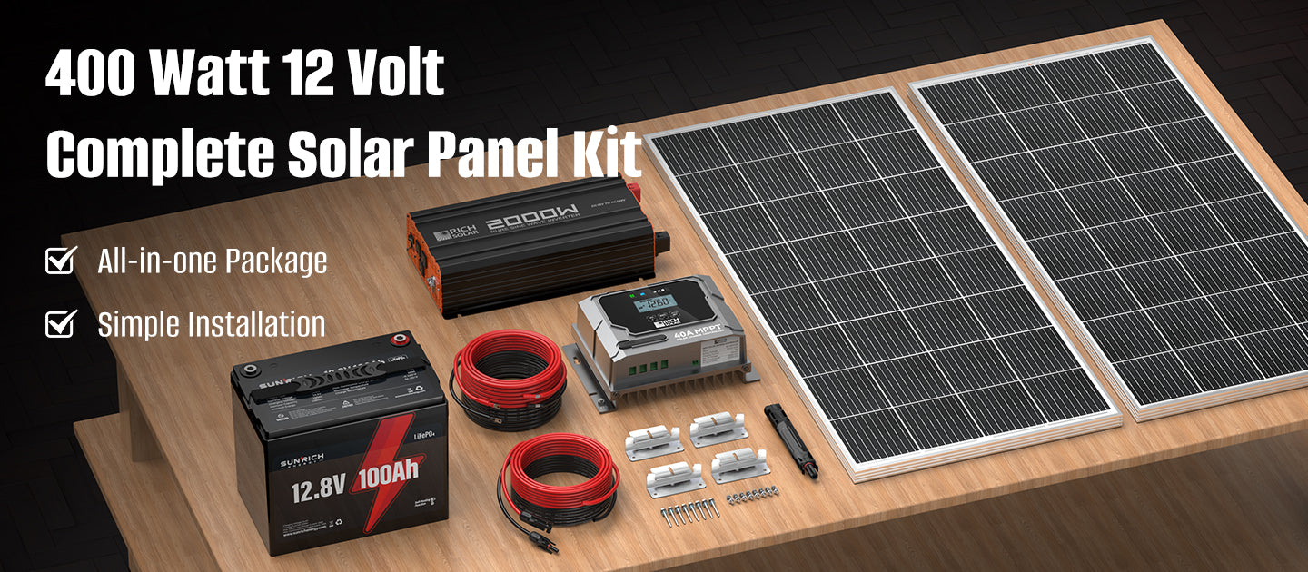 400 Watt 12 Volt Complete Solar Panel Kit with 100Ah LiFePO4 Battery, 2000W Pure Sine Wave Inverter