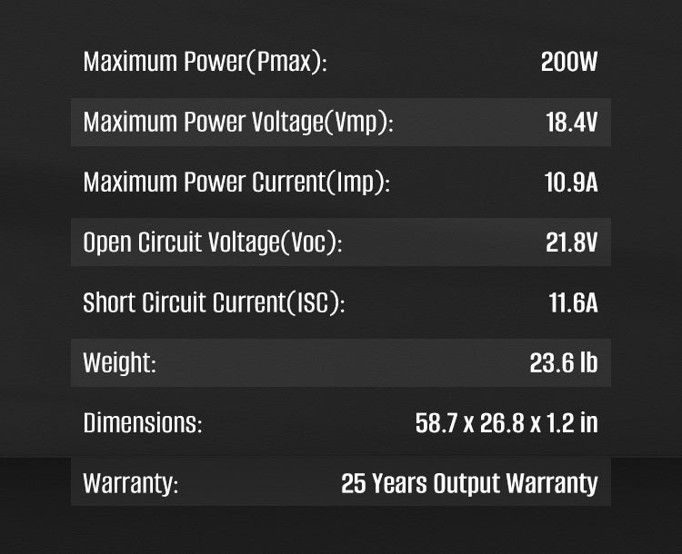 200 Watt Solar Panel Specifications: