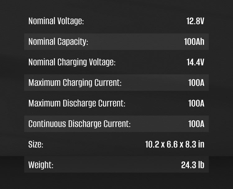 12V 100Ah Battery Specifications: