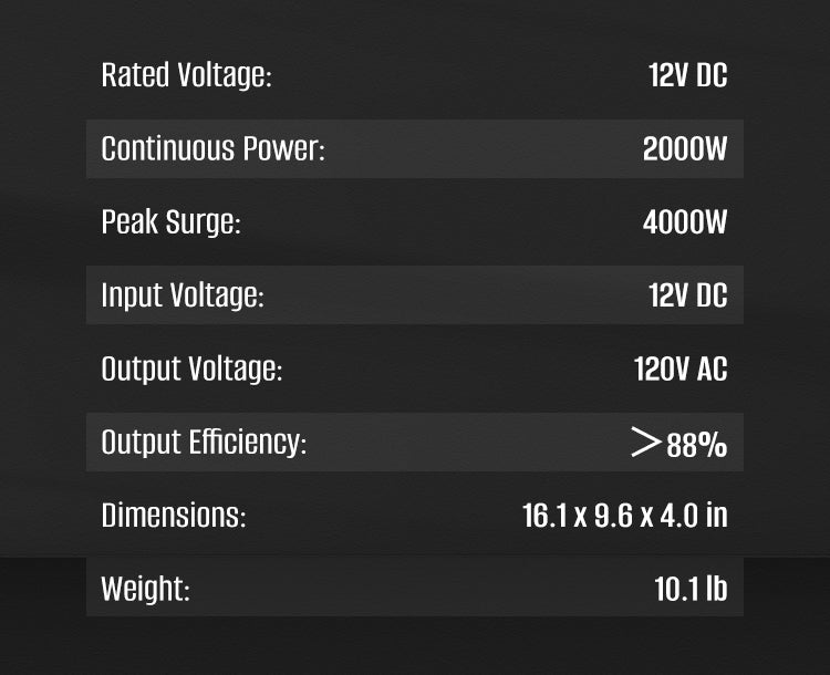 2000W 12V Inverter Specifications:
